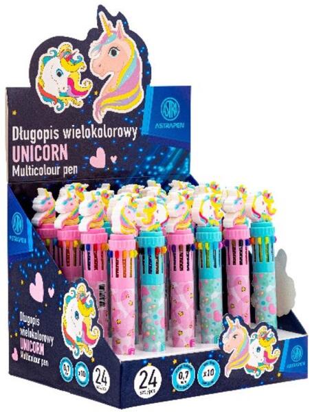 Astra Golyóstoll ASTRA PEN pasztelline Unikorn 0, 7 mm 10 színű 24 db/display (201023025) - nyomtassingyen