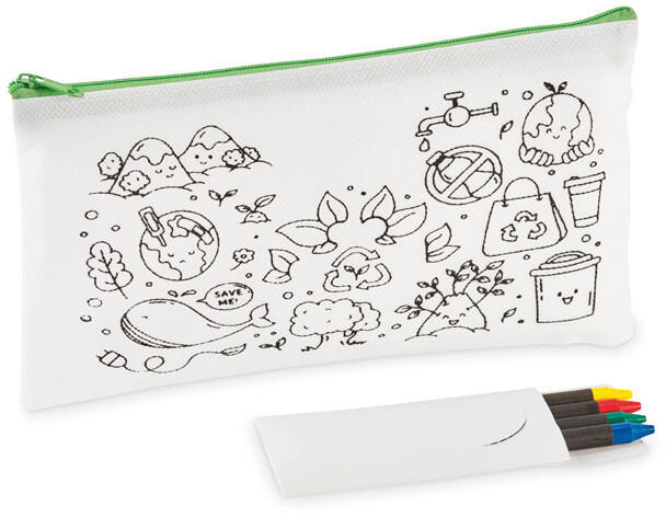 Nemszőtt anyagból készült tolltartó 4 zsírkrétával.