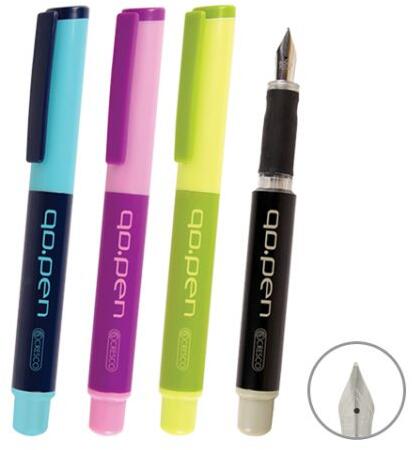 Iskolai töltőtoll Go Pen - színes. Ergonómikus markolatának köszönhetően jobbkezes és balkezes felhasználók számára egyaránt alkalmas. Kiváló minőségű rozsdamentes acél hegy. M vastagságú hegy, a csomag 1 db bombát tartalmaz. Golyóstoll gyönyörű színekben: lila, zöld, kék, fekete.