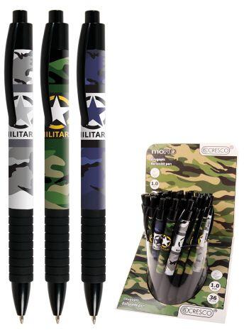 Golyóstoll műanyag testtel és ergonomikusan kialakított gumi markolattal. A toll kellemes kialakítású, gumírozott felülettel. Utántöltő kék, hegy szélessége 1,00 mm.