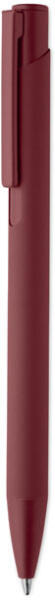 Nyomógombos golyóstoll újrahasznosított alumíniumból, vas csíptetővel és színes gumírozott tolltesttel. Kéken író betéttel.