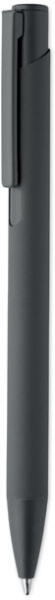 Nyomógombos golyóstoll újrahasznosított alumíniumból, vas csíptetővel és színes gumírozott tolltesttel. Kéken író betéttel.