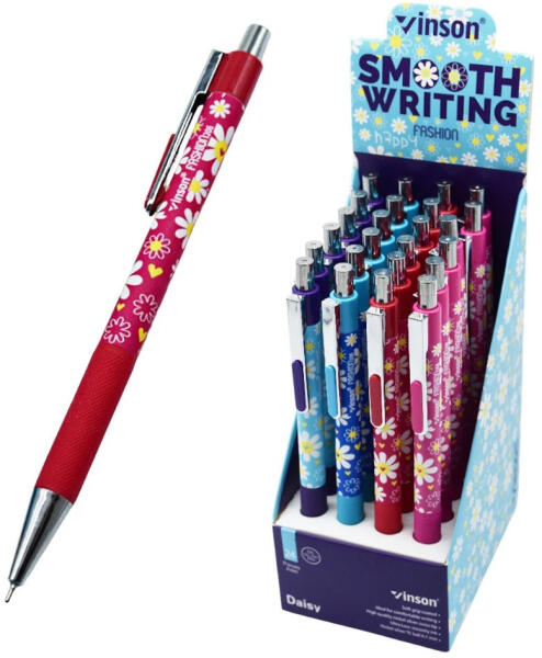 Golyóstoll nyomógombos 0, 7mm Vinson Daisy 206 vegyes test displ 24 db/display