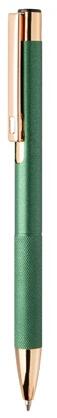 Golyóstoll újrahasznosított alumínium, matt felületű testtel, texturált markolatú, zöld test, rózsaarany klipsz