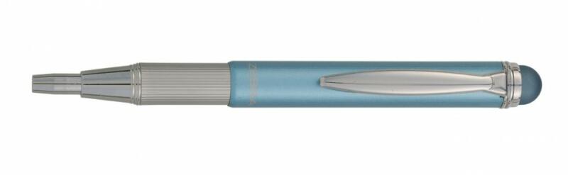 Elegáns megjelenésű exkluzív golyóstoll, rozsdamentes acél tolltest, a szárhossz változtatásával kapcsoljuk be illetve ki a tollat. Tetején touch véggel, mely alkalmas az okostelefonok képernyőjének kezeléséhez. Méretéből fakadóan ideális eszköz azok számára, akik a minőség és az esztétikum mellett a praktikus használhatóságot és a mobilitást is elengedhetetlen feltételnek tartják. Fém teste, fogórésze hosszanti irányban bordázott. Díszdoboz külön rendelhető hozzá. Tintaszín: kék. Golyóátmérő: 0,7 mm, írásvastagság 0,24 mm.