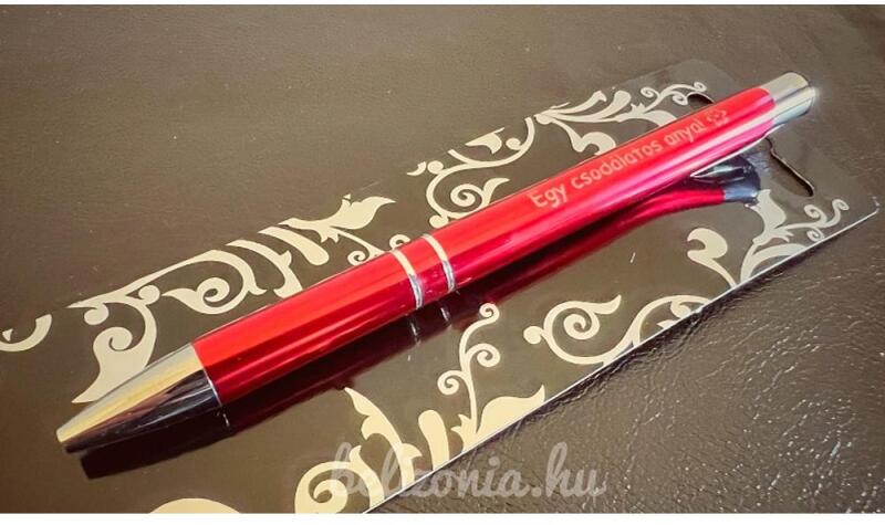 Gravírozott toll - Egy csodálatos anya  Méret: 13,6x1cm Súlya: 15gr Anyaga:fém Szín: piros A golyóstoll tintája kéken fog Felirat: Egy csodálatos anya! Igényes és különleges ajándék ötlet anyukádnak. Biztosan örülne neki, ha meglepnéd egy ilyen tollal vagy ha ezzel köszöntenéd fel. Ajánljuk Édesanyádnak születésnapjára, névnapjára vagy anyák napjára.