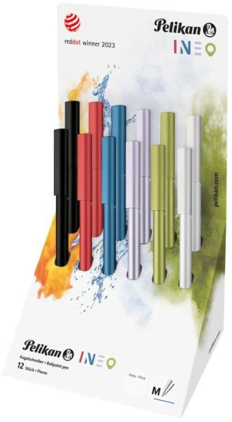 Display 12 db INEO golyóstollal. Az Ineo® fém golyóstoll egy karcsú íróeszköz purista, minimalista stílusban, kék írásszínnel. Különlegessége a klipsz nélküli kialakítás. Ez a tulajdonság különbözteti meg a többi hasonló íróeszköztől, és teszi szemet gyönyörködtetővé a mindennapokban. Egyediesíthető: megnyomható, gravírozható, lézerrel feliratozható. Színeit a természeti elemek inspirálták. 6 szín, 2 db/szín/display.