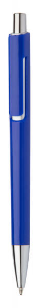 Műanyag golyóstoll színes testtel és króm részekkel. Kék tollbetéttel szállítjuk.