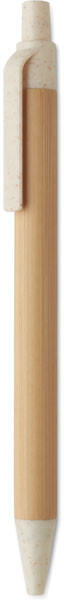 Nyomógombos golyóstoll bambusz tolltesttel, 50% búzaszalma és 50% ABS műanyag szerelvényekkel. Kéken író betéttel.