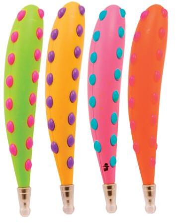 Golyóstoll gyerekeknek gumimasszázs nyúlványokkal. A toll ergonomikus formája kényelmes fogást biztosít, és a puha kiemelkedéseknek köszönhetően nem csúszik. - 4 színű változatban szállítjuk Cserepatron: 0590