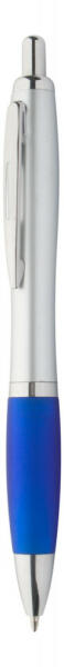 Műanyag golyóstoll színes gumi markolattal és ezüst testtel. Kék tollbetéttel szállítjuk.