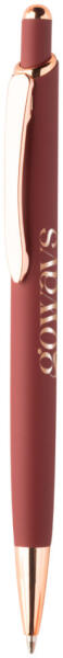 Újrahasznosított alumínium golyóstoll gumírozott felülettel és rózsaarany részletekkel. Speciális bevonattal rendelkezik a rózsaarany színű tükörgravírozáshoz. Kék tollbetéttel.