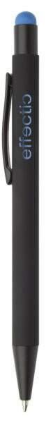 Alumínium golyóstoll érintőképernyős funkcióval, gumírozott felülettel. Különleges bevonattal, melynek gravírozása után az embléma az érintőképernyős véggel harmonizáló színben jelenik meg. Kék tollbetéttel szállítjuk.