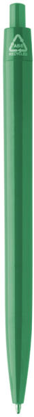 Újrahasznosított ABS műanyag golyóstoll kék tollbetéttel.
