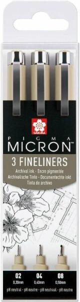 Ez egy automatizált szoftver általi fordítás:Ez a 3 legnépszerűbb Pigma Micron fekete tollat tartalmazó készlet Pigma Micron 02 0,30 mm, Pigma Micron 04 0,4 mm, Pigma Micron 08 0,5 mm. A Pigma Micron egy vízálló és tartós finliner, amelyet tervezők, tudósok, levéltárosok, képregénykészítők, karikaturisták, illusztrátorok és rajongók használnak. Alkalmasak zentangle rajzolására is. A finom hegynek köszönhetően ezek a tollak ideálisak műszaki és művészi rajzok készítéséhez. Az egyedülálló Sakura Pigma tinta nem szivárog át a papíron, tartós, vízálló, fakulásálló, gyorsan szárad és pH semleges.