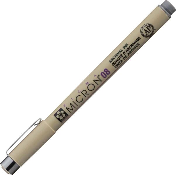 Ez egy automatizált szoftver általi fordítás:Műszaki toll. A Pigma Micron egy vízálló és tartós toll nagyon vékony hegygel, amelyet tervezők, tudósok, levéltárosok, építészek, manga művészek, karikaturisták, illusztrátorok és még amatőr művészek is magabiztosan használnak. A vékony hegynek köszönhetően ez a toll ideális mind műszaki, mind művészi rajzok készítéséhez. A toll meghosszabbított hegye körül egy védő fémhüvely található, amely extra kontrollt és fokozott tartósságot biztosít rajzeszközökkel, például vonalzókkal használva. Az első eldobható műszaki toll, amely archivális pigmenttintát használ. Műszaki szakemberek, például antropológusok, entomológusok, tudósok, mérnökök, levéltárosok, építészek és kutatólaboratóriumi kutatók használják. A legtöbb papírtípuson nem maszatolódik, nem folyik el és nem ütődik el. Archív minőségű tartós tinta. Víz- és fakulásálló. A pigment alapú festékek vizes összetétele összetettebb és stabilabb, mint a festék alapú festékeké.