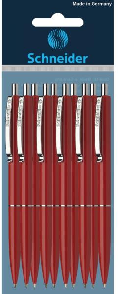 Schneider K15 golyóstoll, Piros test, Kék írófelület, 10 db/készlet - A klip, a gyűrű és a gomb fémből készült- Személyre szabható- Írás színe: kék- Írás vastagsága: 0,4 mm (M)- Test színe: piros