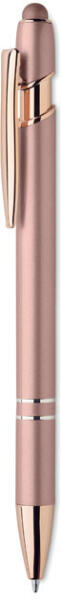 Újrahasznosított alumínium érintőhegyes golyóstoll rózsaarany részletekkel. Kéken író betéttel.