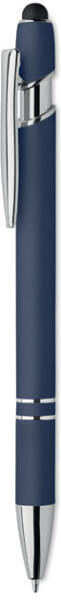 Újrahasznosított alumíniumból készült érintőhegyes golyóstoll. Kéken író betéttel.