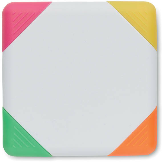 Négyszögletű ABS szövegkiemelő. 4 szín: sárga, fukszia, narancs és zöld.