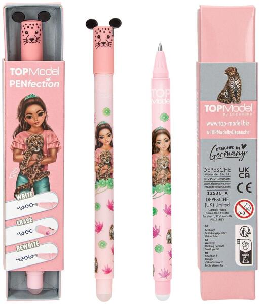 TOPModel törölhető zseléstoll. Egyszerűen dörzsölje át a toll kerek műanyag végét az íráson, és máris törlődik az. Aranyos állat alakú sapkák (elefánt, leopárd, kenguru, kapibara). Stílusos kartondobozba csomagolva.