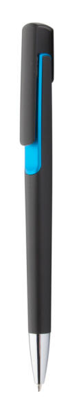 Műanyag golyóstoll színes dekorációval és króm véggel. Kék tollbetéttel szállítjuk.