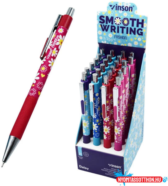 Vinson Golyóstoll nyomógombos 0, 7mm Vinson Daisy 206 vegyes test displ 24 db/display (59112) - nyomtassotthon