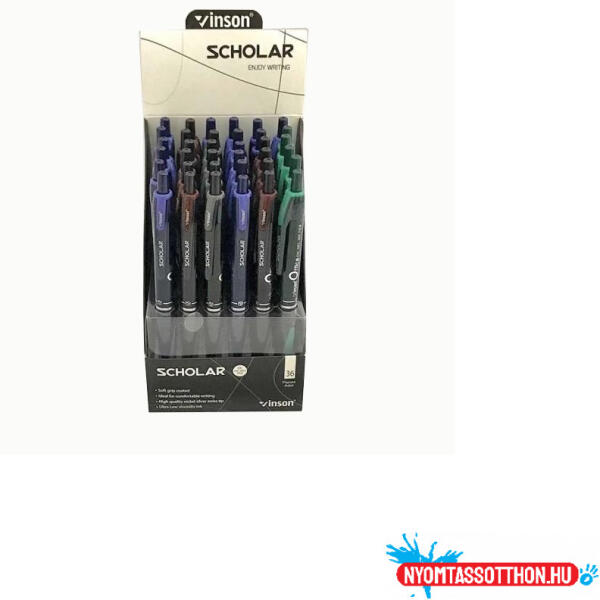 Vinson Golyóstoll nyomógombos Vinson V5 Scholar kék test gumírozott fogó 36 db-os displayben (GTVINV536D) - nyomtassotthon
