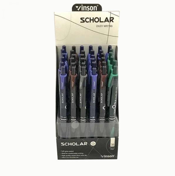 Vinson Golyóstoll nyomógombos Vinson V5 Scholar kék test gumírozott fogó 36 db-os displayben (GTVINV536D) - veryjet
