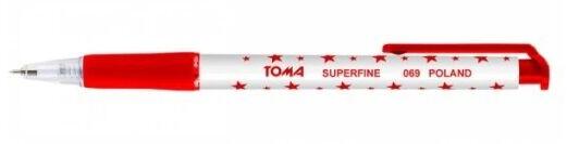 TOMA Superfine 069 Golyóstoll - Piros csillagokkal a stílusos íráshoz! ✒️ Ez a TOMA Superfine 069 golyóstoll tökéletes választás a mindennapi íráshoz. A finom vonalvezetés és a kényelmes fogás garantálja a zökkenőmentes írásélményt. A piros csillagokkal díszített design pedig egyedi megjelenést kölcsönöz. Főbb jellemzők: ✅ Automatikus működés: Egyetlen kattintással elővarázsolhatod a hegyet. ⭐ Piros csillagokkal díszített: Stílusos és egyedi megjelenés. ✍️ Szuperfinom hegy: Precíz és tiszta vonalvezetés. ? Piros tinta: Élénk és jól látható írás. Made in Poland Legyen szó jegyzetelésről, aláírásról vagy kreatív alkotásról, a TOMA Superfine 069 golyóstoll mindig kéznél lesz, hogy stílusosan fejezhesd ki magad!