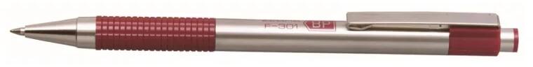 ZEBRA Golyóstoll F-301 0,7 bordó, kék betétteA ZEBRA F-301 nyomógombos golyóstoll fémből készül, fogórésze bordó, bordázott. Cserélhető betétes (F betét), tintája kék színű, írásvastagsága 0,24 mm.