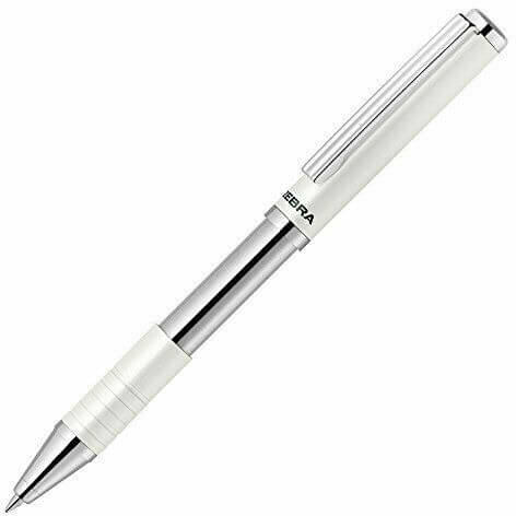 Elegáns, fehér színű megjelenésű, különleges golyóstoll a ZEBRA-tól fekete díszdobozban. Teleszkópikus (szétcsúsztatható) ergonomikus markolatú, bordázott fém testűű golyóstoll. A golyóstoll teteje gumival zárt (touch vég), amely hasznos érintőképernyők vezérlésére, okostelefonok kezelésére.